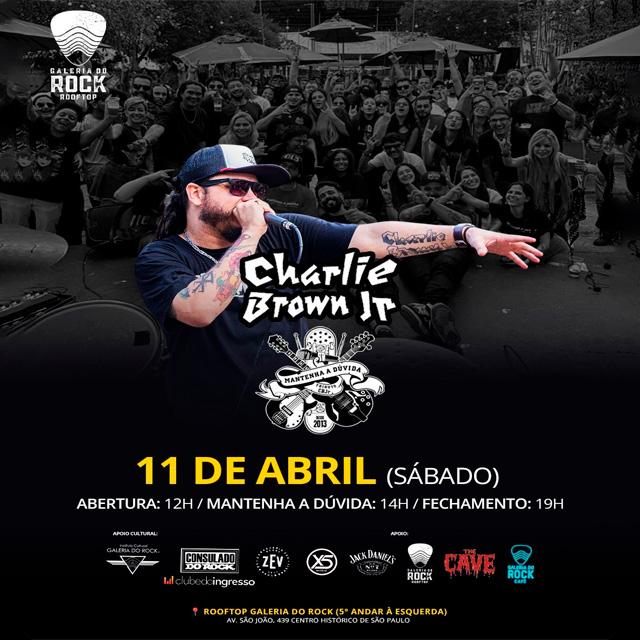 Horários: Abertura da casa: 12h Charlie Brown Jr. : 14h Fechamento: 19h Charlie Brown Jr. (Mantenha a Dúvida) Idade : livre para todas as idades. Menores de 12 anos têm entrada gratuita e menores de 16 anos devem estar acompanhados de um dos pais ou responsável legal Atenção! Entrada na Galeria do Rock até às 20h. Embora tenhamos muito carinho pelos animais, informamos que, neste espaço, não é permitida a entrada de pets. (Regras do condomínio) Venda online somente até as 12h00 do dia do show, depois somente na porta.