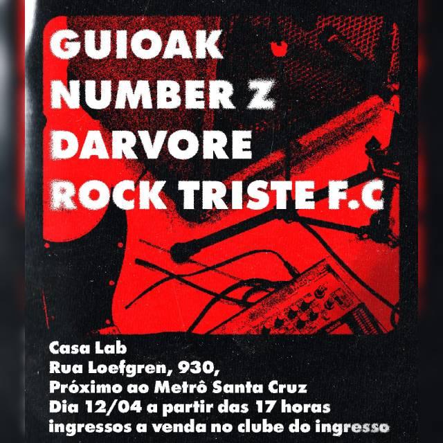 No dia 12/04 a @Casa Lab recebe um evento de celebração do rock alternativo e da cena independente de São Paulo. No palco, Guioak, Number Z, Darvore e Rock Triste F.C mostram o que a de melhor dentro do circuito de música autoral da cidade.
