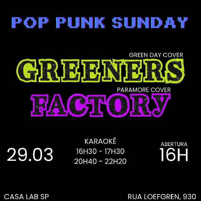 Prepare o coração (e a garganta)! No dia 29 de março, a partir das 16h, teremos uma tarde épica dedicada ao melhor do Pop Punk e do Rock Alternativo. Se você viveu o auge da MTV ou simplesmente não consegue ouvir um acorde de guitarra sem querer pular, esse evento foi feito para você. Confira o que te espera: Greeners Day (Green Day Cover) @greenersday Sinta a energia de Billie Joe Armstrong e companhia! A banda traz os maiores sucessos do trio californiano, de Basket Case a American Idiot, garantindo um show explosivo e cheio de nostalgia. Factory (Paramore Cover) @factory.paramore Prepare-se para cantar todos os hinos da era Riot! e muito mais. Com uma performance fiel e vocais potentes, a Factory promete um tributo inesquecível para todos os fãs de Hayley Williams. Karaokê Não quer ficar apenas na plateia? O nosso Karaokê estará a postos para você soltar a voz! Seja para realizar o sonho de ser um rockstar por cinco minutos ou para se divertir com os amigos, o palco também é seu. Informações Importantes: Data: 29 de Março Horário: A partir das 16h Atrações: Greeners Day + Factory + Karaokê